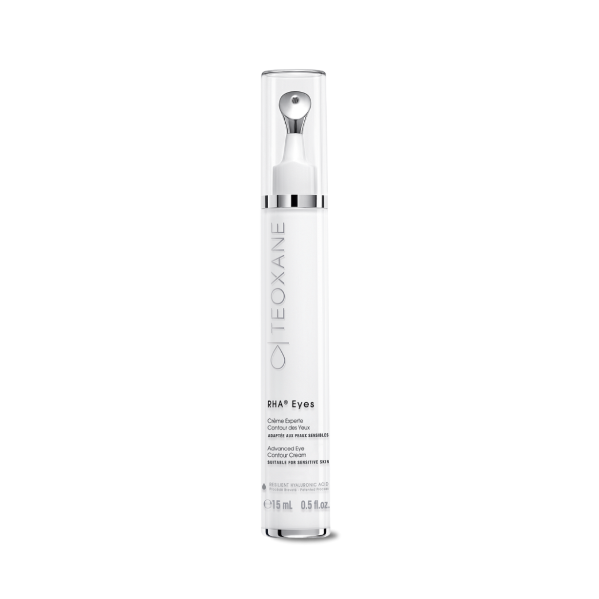 TEOXANE RHA® Eyes is a comprehensive eye treatment specifically formulated to tackle the three major signs of aging around the eye area: fine lines/wrinkles, dark circles and puffiness. Teoxane With its lightweight, lightly tinted formula and cooling metallic applicator, it delivers both immediate visible improvement and long-term care. Powered by Teoxane’s patented RHA® (Resilient Hyaluronic Acid) technology, the formula forms a breathable mesh on the skin’s surface, locking in hydration and strengthening the delicate skin around the eyes. The result: an eye contour that appears smoother, brighter and more rested.